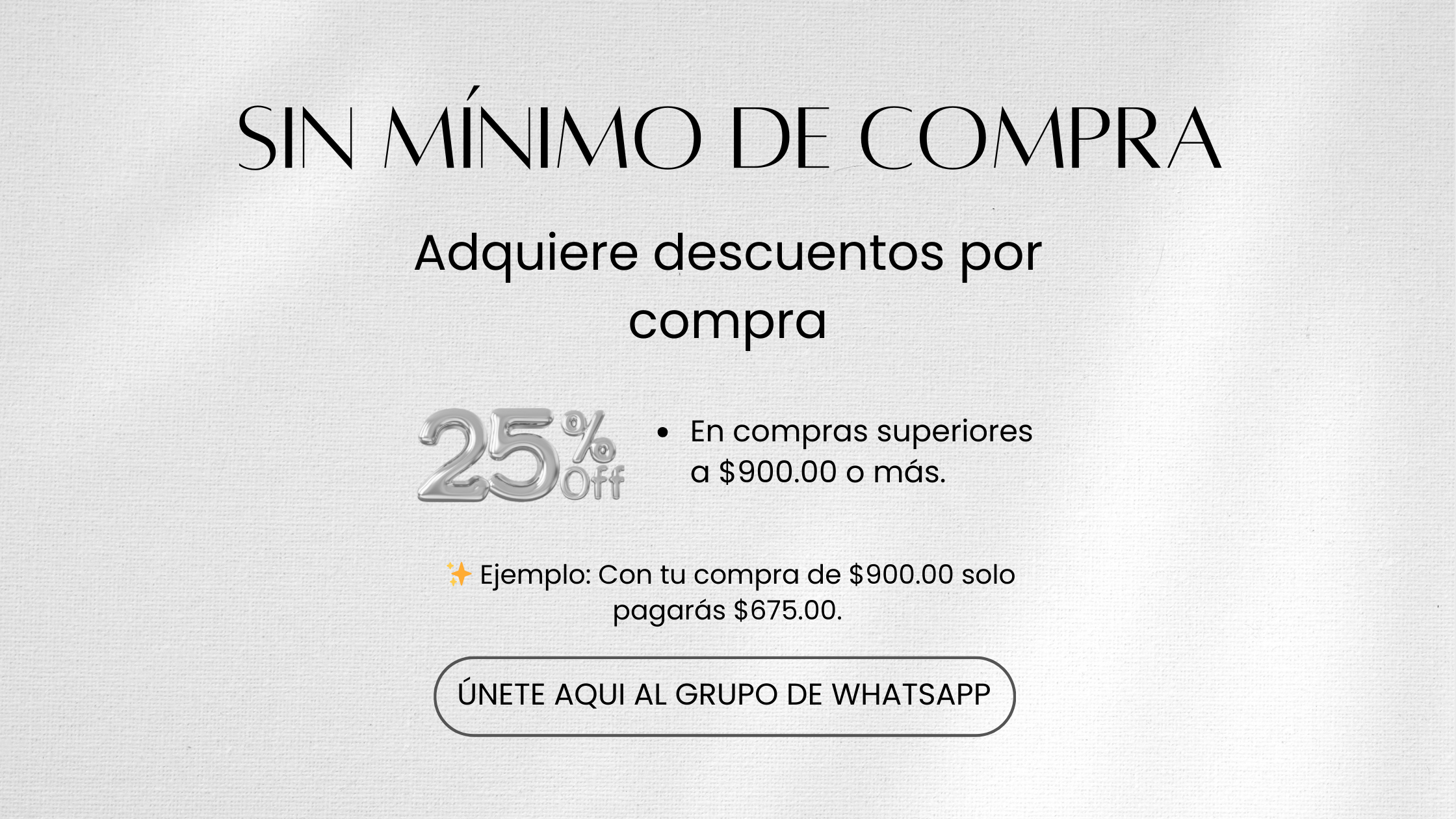 25% de descuento en compras mayores a $900.00